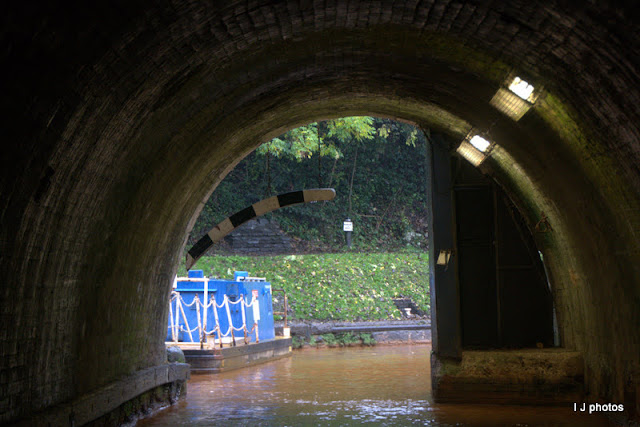 I was steering and the journey to the tunnel was short, but with it being dull, grey, dismal and wet, I wanted the brolly up, but Ian has this thing of not cruising with any sort of covering to obscure the vision, including pram tops. (mores the pity) So water dripped from my nose and face, freezing hands cos they were wet and worse... my so-called waterproof.... wasn't! My plight didn't faze Ian in the slightest, made of hardy stuff he is, but it was a welcome sight for me when we reached the tunnel and I could go inside FS