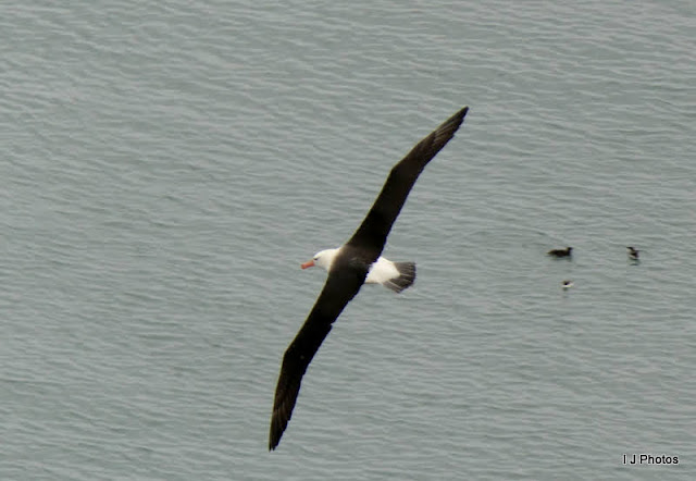 Gosh, it was busy! In fact, the lane leading to the car park was full of parked cars and folk heading off over the fields armed with tripods and those huge lenses attached to cameras that stuck out a mile, hmm I'm sure if one must have to be a weight lifter to carry them! Anyway, what was going on? I feared the car park would be full but as the first motorhome to arrive, 2 places had been allocated for the longer vehicle. Result! Anyway, on asking if a rare sighting had been seen, I was told that a Red-tailed Shrike was in the area, and of course hundreds of twitchers had made their way to where it was last seen. Not only that but a Black Brown Albatross had also returned for another year, having first been sighted in 2020 and last year in September (same time as our visit but no sight of it then) This was another bird that shouldn't be here in the UK.