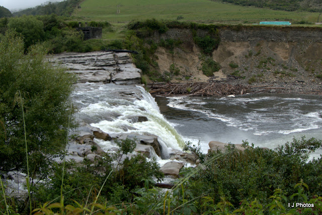 So back to today. With the amount of rain last night, first thing was walk back down to the Maruia Falls. Wow, the rocks we had crossed to get to the front had completely disappeared. Difficult to tell in this photo but the volume of water cascading over the ridge was amazing.