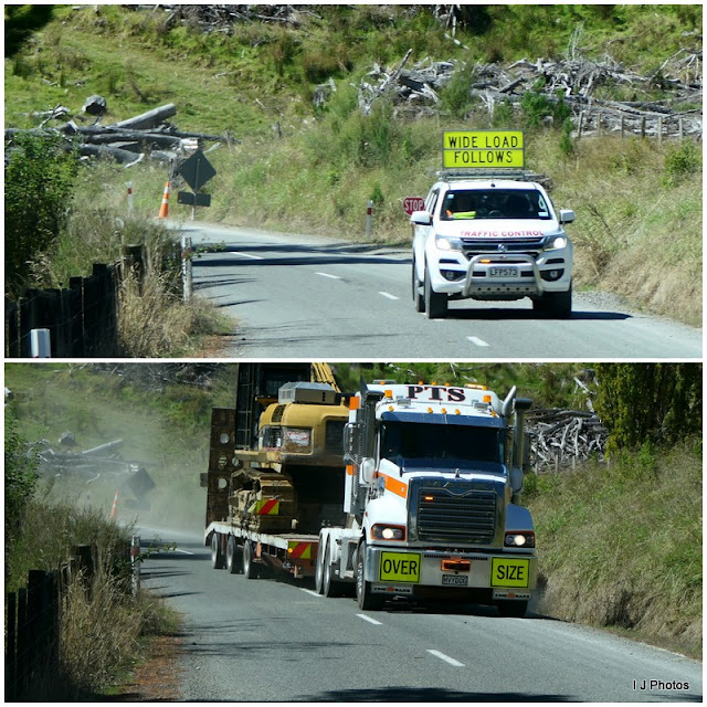 Today's journey from Eketahuna was about 120 km. The road we took was route 52 and if we saw 2 cars in 50 km we thought we hit a traffic jam!. The first part of the journey was relatively easy but the further we drove, the more road damage, slips, mud slides and trees down had to be negotiated. These photos are from roughly a 30 km stretch, all separate incidents apart from a couple and a good part of it followed the river.