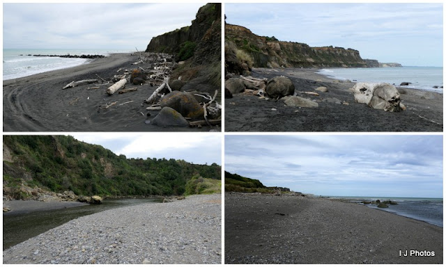 Tonight's stop is at a paid campsite, $30 for both plus free showers and washing machine! I could have used that machine but the weather had turned drizzly and with no dryer to hand just a washing line, felt sure the clothes would still be wet even if left out overnight. We managed a short walk on the beach though.