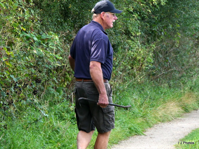 With only about an hour cruise ahead of us before we got to Hawkesbury Junction, a phone call from David (Waka Huia) to say no moorings were available near to them. We had been in communication since leaving Snarestone and decided to keep them company and annoy the hell out of them for another week. So we stopped at the end of a line of boats, Ian went ahead to see if anything was available and phoned me to say there was space and to bring the boat. By the time I arrived to where he wanted me to pull in, David had arrived. Well I took one look at the gap and said "No chance". Why is it that some men insist that things are bigger than they are? That gap was way too small but to keep that man of mine happy I tried. So I did a reverse parking manoeuvre, Ian grabbed the centre rope and pulled FS in. But I was right! The bow stuck out a good foot and only if the removal of the button fender was done could FS have slotted in. Then Marilyn arrived. Leaving David with me, she took Ian to Waka Huia with the idea of moving a plastic cruiser back several feet. This boat had left what she calls "a git gap" and if moved the space would then be big enough for the 57 ft that FS was. One problem with that. the owner was not on board!